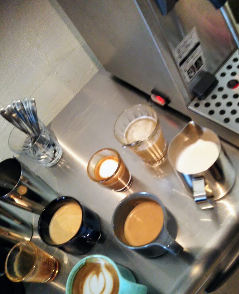 エスプレッソ抽出の再調整➔ミルクスチーミングの理論と実践確認➔ラテアートトレーニング