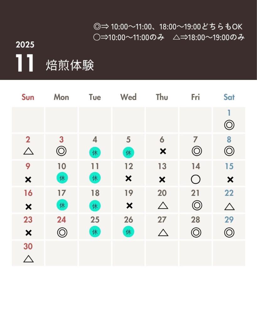 開始時間は10:00~ / 17:30~、以下カレンダーの中の「休業日」以外の日程からお選びください。